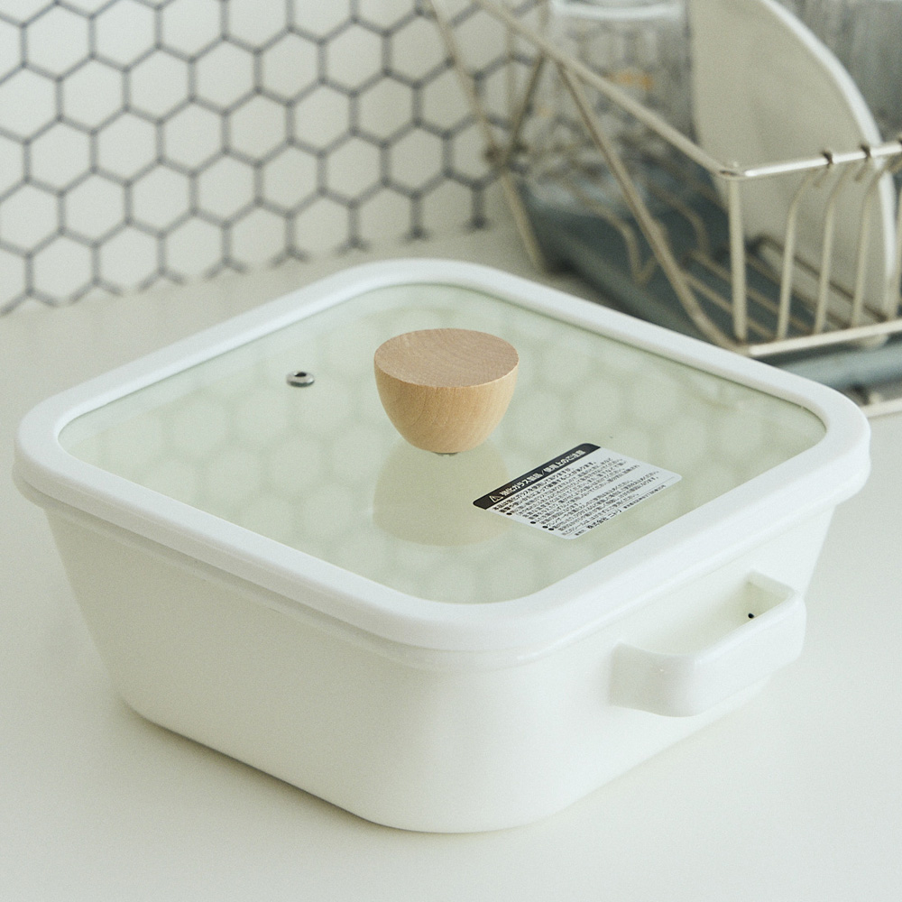 IH・ガス火 保存もできる ホーロー角型鍋(20cm)