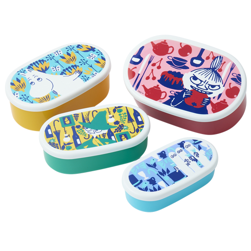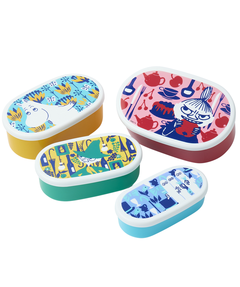 キャラを描いたカラフルなデザインがかわいらしく、重ねて収納できてとっても便利。4サイズがセットになったランチボックス¥1,760