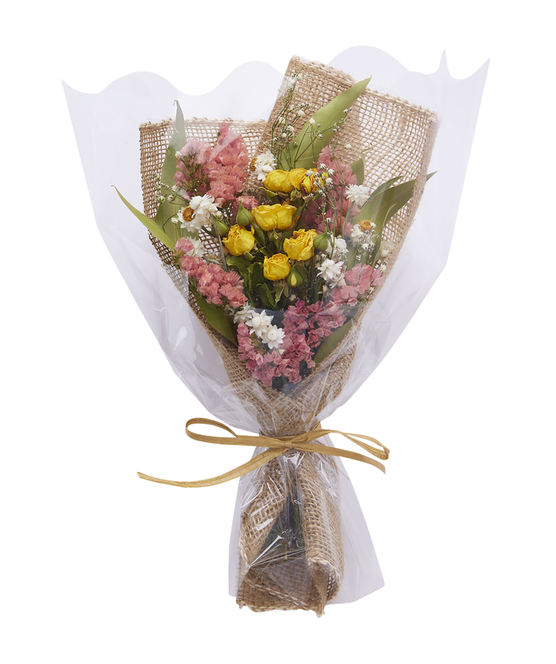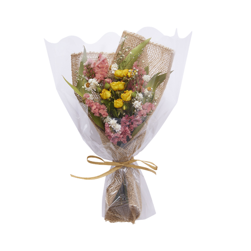スイーツやドリンクと一緒に撮れば写真映え抜群!ピクニックシーンを華やげる、春らしい鮮やかな色味のドライフラワーブーケ¥3,600