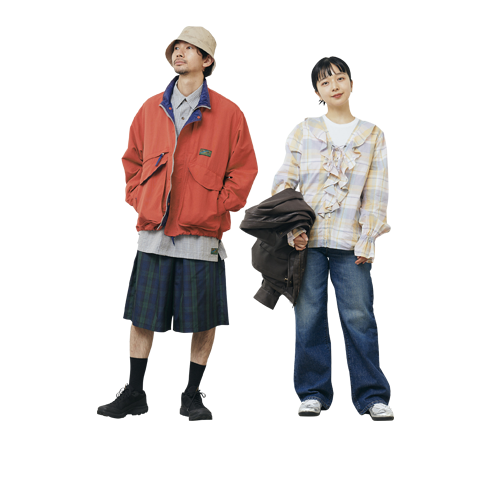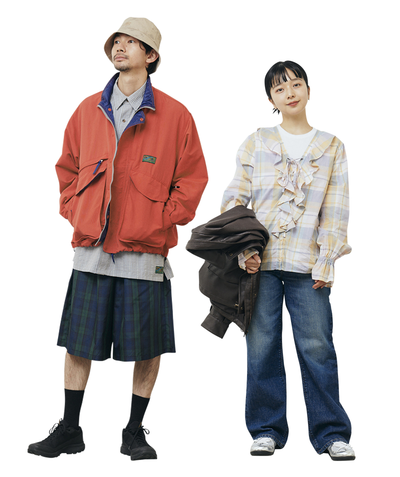 春らしい配色のシャツで軽やかに。フォックスファイヤー別注ジャケット¥14,960、同シャツ¥7,997、アンブロ別注ショーツ¥11,000、同バケットハット¥5,500