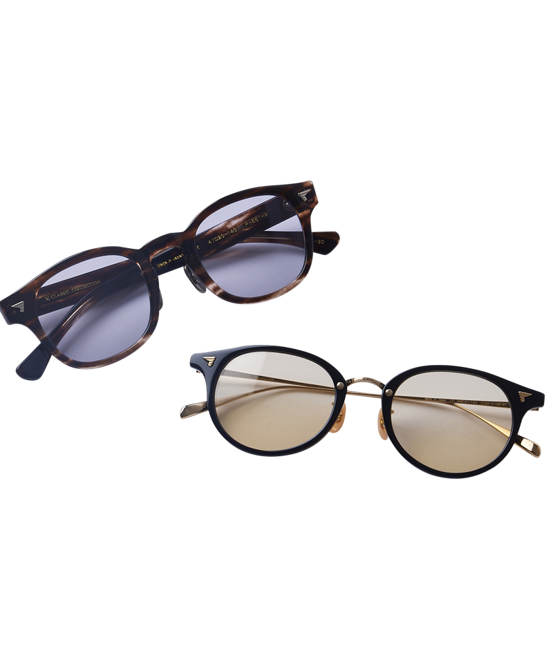日差しや紫外線をカットしつつ、おしゃれ感を高めてくれるBJクラシックコレクションのサングラス。(左)ウェリントン型¥41,800、(右)ラウンド型¥46,200