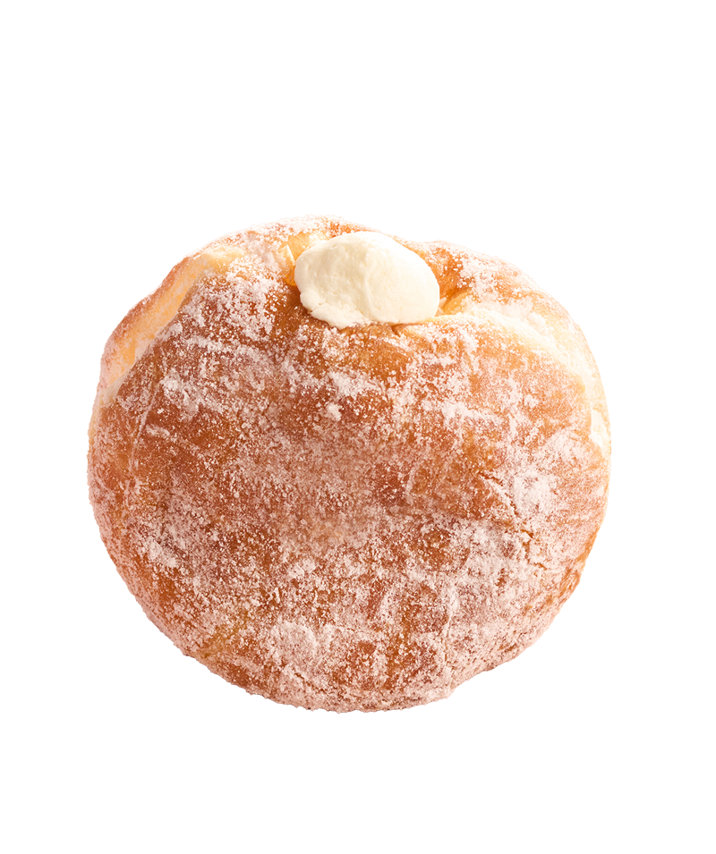 軽くてふわふわの自家製生地に優しい甘さのクリームを包んだドーナツは、ピクニックのおやつに最適。1番人気の生カスタード¥398