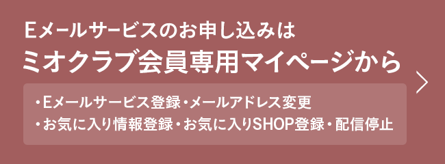 ミオクラブ5倍ポイントアップフェアや バーゲン情報のほか、NEWSHOP、イベント情報などをご希望の方へお届けします。