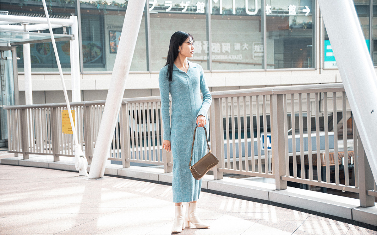 カラーネックタイトニットワンピース ¥15,400・【JWPEI】ジョイ ショルダーバッグ ¥11,550