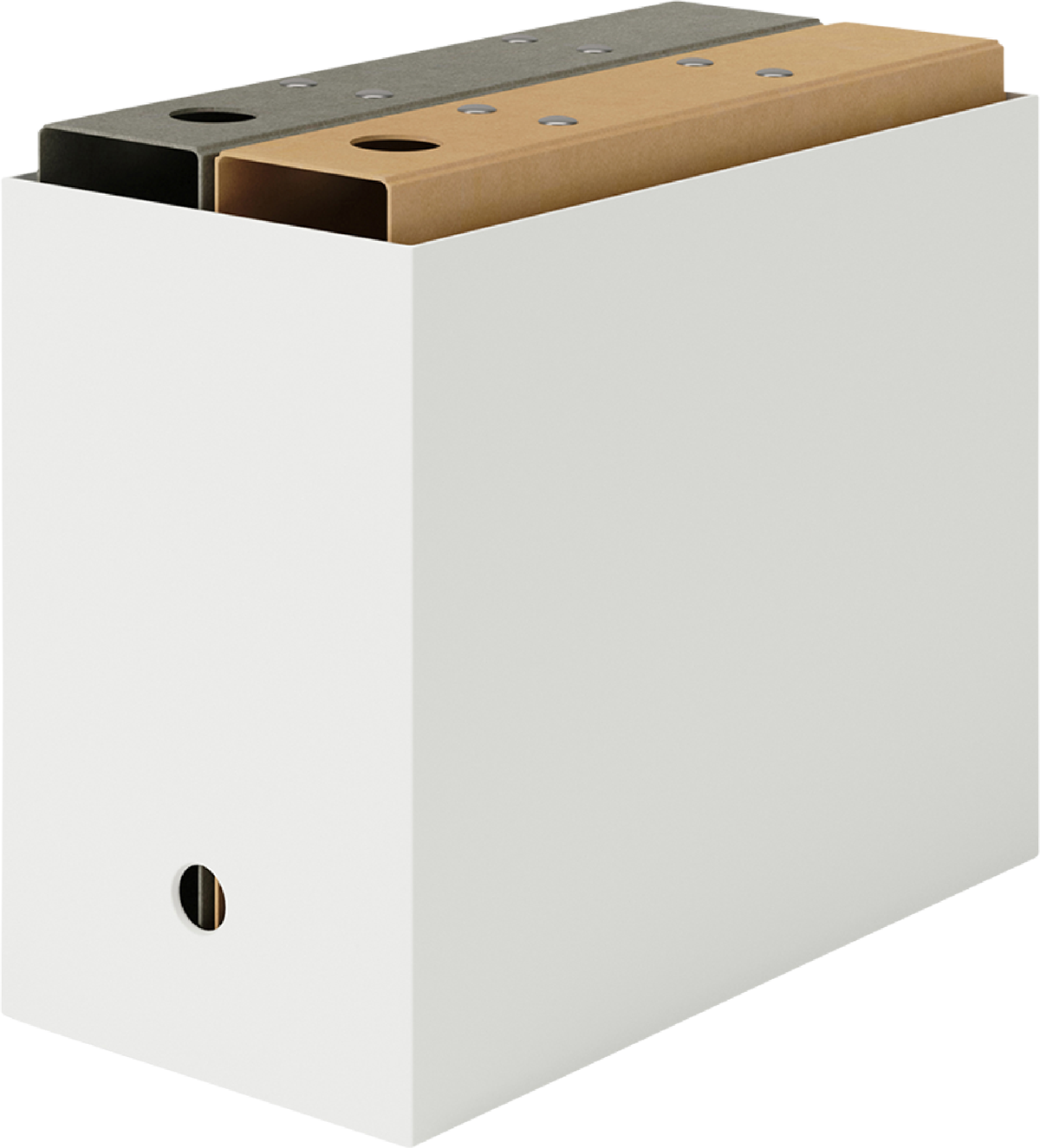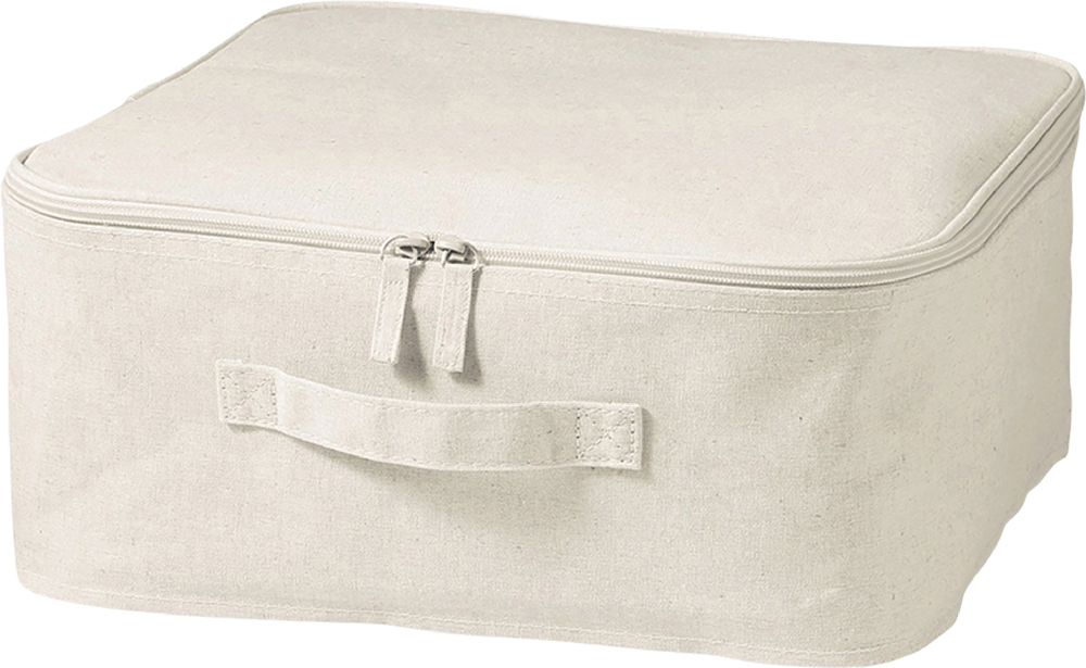 PP収納ケース引出式横ワイド 大(W550×D445×H240mm)¥2,290、ポリプロピレンファイルボックス A4用(W150×D320×H240mm)¥790、ポリエステル 麻 ソフトボックス 小(H350×D350×F260mm)¥990