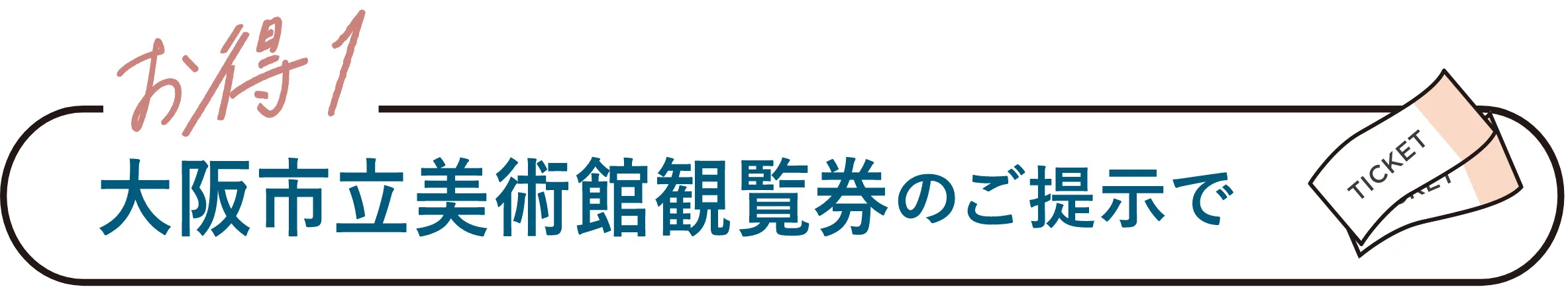 観覧券にショップ印を捺印させていただく場合があります。 - 特典のサービス内容は、大阪市立美術館観覧券1枚につき、お一人様が対象となります。