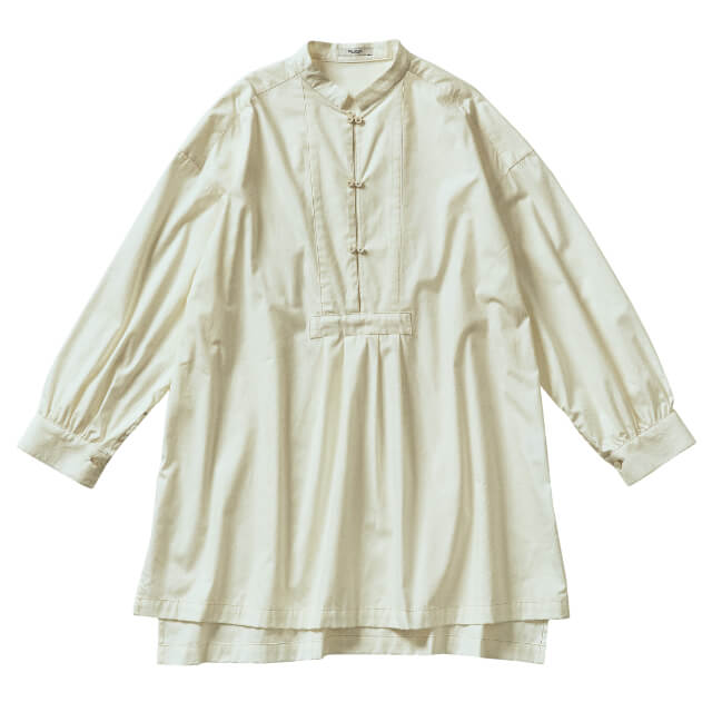 アンティークシャツのようなスクエアヨークとタックが特徴のチュニックブラウスが、天王寺ミオだけのスペシャルプライスで登場。スタンドカラーなので、ガーリーになりすぎず大人っぽく着こなせます。腰までかかる長めの丈感で、丸みのあるフレアシルエット。ロングスカートやパンツ、ボトム次第で色んなスタイルが楽しめます。ニットベストを合わせるなどレイヤードコーデもおすすめ。