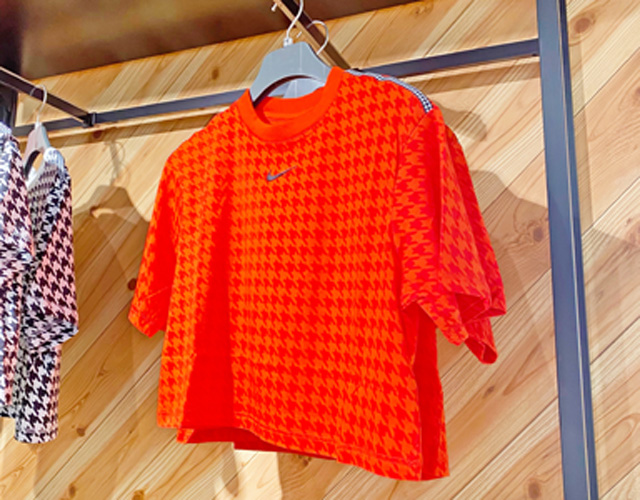 千鳥格子プリントを全体にあしらい、定番スタイルをアップデート。肩の縫い目に配した千鳥格子のテーピングがアクセントに。流行の短め丈で、お気に入りのレギンスと合わせやすいアイテムです。