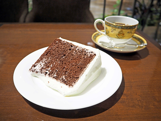 スイーツを合わせるなら、「シフォンケーキ」がおすすめです。英國屋で20年以上受け継がれる伝統の味で、しっとりふわっふわの口当たりがたまりません。ケーキのチョコ生地とクリームがコーヒーによく合って美味しい♡