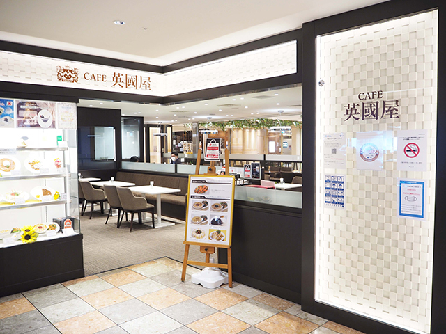最初にやってきたのは老舗喫茶店「カフェ 英國屋」。昭和36年の1号店オープン以降、大阪をはじめ東京や名古屋など日本全国にお店を展開し、どの店舗でも落ち着いた空間と洗練された味を維持し続ける名店です。