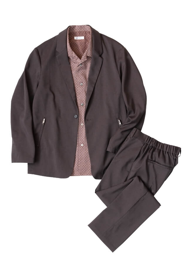 ジャケットに旬のジップポケットをあしらったメンズのセットアップ。ジャケットデザインながらカッチリしすぎず、カジュアルに着られます。インナーは今季注目の小紋シャツを合わせるのがおすすめ。スタイリッシュに見えて生地はストレッチ性抜群で軽やかな着心地。落ち着いた色はどんなコーデにも合い大活躍。おしゃれなメンズにおすすめの、2021年今シーズンのイチオシコーデです。