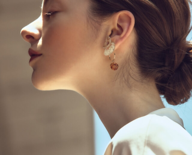 パーツの着脱で印象が変わる2WAYタイプのピアス・イヤリングなので、幅広い年齢層の方におすすめ。顔まわりを華やかにしたい時、季節感をプラスしたい時に。