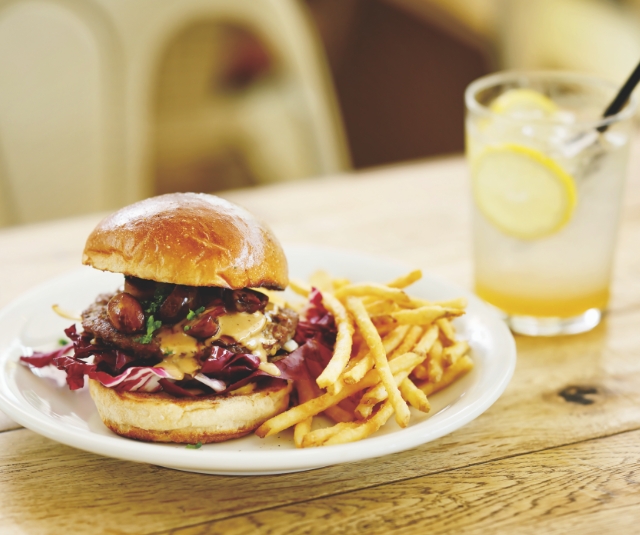 ジェイエス フーディーズの自慢メニューは、秋の味覚たっぷりのハンバーガー。ポルチーニ香るクリームソースにグリルしたマッシュルーム、エリンギなど、秋を存分に楽しめますよ。期間限定なのでお見逃しなく!トッピングは肉厚ベーコンがおすすめです。
