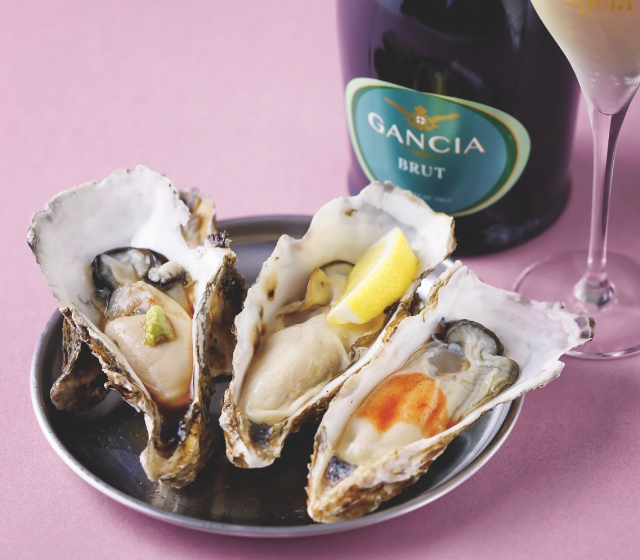 名物の新鮮なシェルガキ3個と、お好きなワインをお得に楽しめる、天王寺ミオだけの限定メニュー。「牡蠣とワイン 立喰い すしまる」は立喰い寿司と牡蠣、ワインをカジュアルに楽しめるスタンド。毎朝、中央卸売市場から新鮮な魚介類を仕入れています。