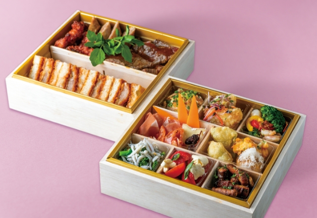 ホームパーティーや記念日、ハレの日などにぴったりな豪華テイクアウトボックス。旬の食材をふんだんに使ったお惣菜の詰め合わせボックスと、ステーキや牛フィレカツサンドなどお肉の料理を詰め込んだボックスの2段。それぞれ単品でも注文でき、MEAT BOXは5,300円、OSOZAI BOXは3,500円。シーンや人数に合わせてボックスを使い分けてみるのもおすすめ。