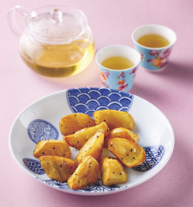 外はカリカリ、中はホクホクに仕上げた百楽伝統のいものあめだき。パリパリ感がおいしいので食後のデザートにどうぞ。いものあめだきの甘みには、ほろ苦いジャスミン茶がよく合います。爽やかなジャスミンとバニラの甘い香りが食後の締めくくりにぴったり。肌寒い季節にはホクホクの豚まんもおすすめ。秋の中華グルメも絶品です。