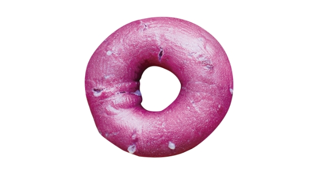 ホクホクとした甘みのある紫芋の生地に、ホワイトチョコを練り込んだベーグル。秋の訪れを感じる色合いです。子どもから大人まで食べやすい、上品でほっとする甘さ。テイクアウトしておうちで食べる場合はトーストするのがおすすめ。そのまま食べても、スライスしてバターを塗っても◎。板チョコやホイップクリームのほか、抹茶アイスや黒蜜、焼き芋や大学芋など和テイストな甘さと相性抜群です。