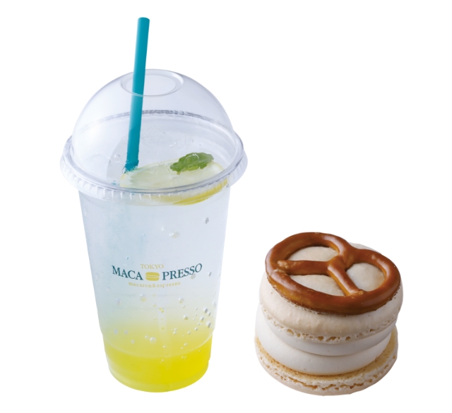 カラフルなレモネードは写真映え抜群の炭酸ドリンク。韓国語で「太っちょマカロン」を意味するトゥンカロン(ソルティーキャラメル)は見た目もかわいくボリューミー。塩味が利いたキャラメルクリームとプレッツェルが相性抜群でおみやげにもぴったり。