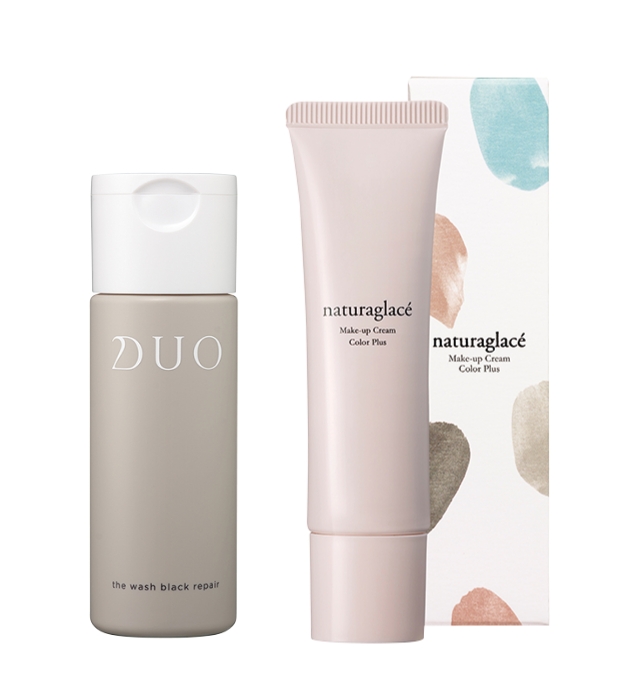 「デュオ ウォッシュ ブラックリペア」は毛穴の黒ずみ&角栓をすっきりオフするデュオの酵素洗顔パウダー。炭と酵素、3種のクレイの特性を活かし、「ほぐして溶かす」「かき出して吸着」「トリートメント」の3ステップで毛穴をケアします。シリーズ新作の「ナチュラグラッセ メイクアップ クリーム カラープラス」には、カラー補正効果がプラス。肌の色味や凸凹を自然に補正する、白浮きしにくいオールインワンなクリームです。ラベンダーピンクとミントグリーンの2色を展開。