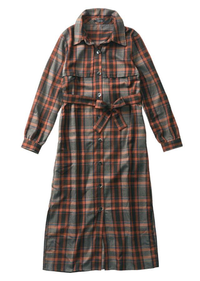 秋らしいオレンジを取り入れたチェック柄は天王寺ミオ限定カラー。ふんわりと起毛がかった温かみのある生地を使用しています。フラップ付きの軽やかなシルエットが特徴で、ワンピース風に着こなしたり、羽織としても活躍。ベーシックに今年らしさを取り入れた、秋らしいカジュアルコーデが楽しめます。