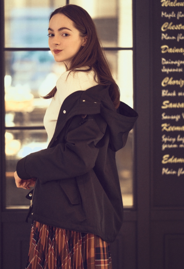 季節の変わり目に欠かせないマウンテンパーカー。前後差がある後ろ下がりのシルエットで程良い着丈がバランス良く、大人カジュアルなコーデにぴったり。素材に撥水加工を加えているので、雨の日でも気軽に着用できます。ゆったりめの作りでインナーを選ばないところも魅力。普段の服にさらっと羽織れます。アウトドアなデザインながら素材やディティールはきれいめで、カジュアルからフェミニンスタイルまで幅広くカバーするアウターです。