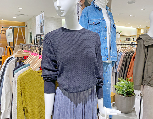 イタリアの紡績メーカー「EMILCOTONI(エミルコットーニ)」社のオーガニックコットンを100%使用したニットは柔らかく滑らかな肌触りと上品な質感で着心地抜群。細めのケーブル柄がポイントで動きのある柄が存在感をプラスし、1枚で主役になるアイテムです。