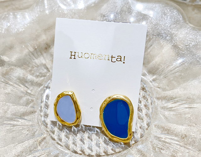 ツートーンカラーとアシメデザインがおしゃれなピアスはブルーカラーが大人な印象に。小さめサイズで差し色になるからコーデのワンポイントにもおすすめです◎