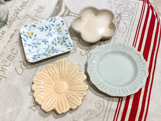 「シトロン 小皿」「マーガレット 小皿」「ポンポネ プレート」(左上、左下、右下) 各770円