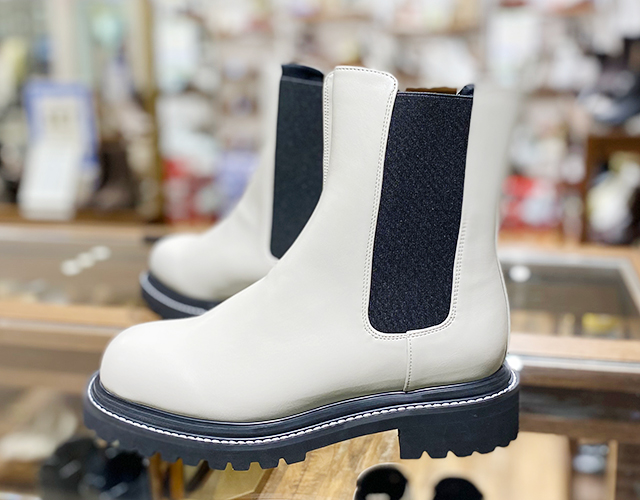 タンクソールとスクエアトゥが今年らしいチェルシーブーツが登場。少し長めの丈感で使いやすいところもポイント。ボリュームソールで秋のコーディネートを引き締めてくれる1足です。