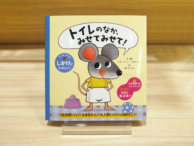 「いろいろな動物たちと一緒に、楽しくトイレトレーニングができる1冊です。しかけ絵本なのですが、動物によってうんちのかたちもさまざまなんですよ!しかけをめくったときの驚きがあり、楽しくトイレのことがわかります。」