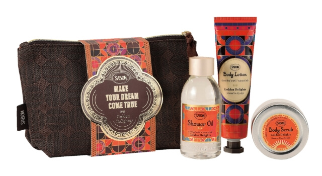 人気ブランドの「サボン」から注目のボディケアのキットをご紹介。SABON 2021 Holiday Collection限定の「ゴールデン・ディライト」は、豊かなチョコレートと情熱的なブラッドオレンジの甘美で芳醇な香り。コレクションラインナップの中から代表的なボディケアアイテムのミニサイズ3点を収めた、この冬だけの限定ポーチです。鮮やかな色彩の幾何学模様で描かれた芸術的なパッケージも魅力。ボディケアの習慣を続けたい人、冬の乾燥が気になる人におすすめ。毎日のバスタイムに彩りをプラスして素敵なライフスタイルを送りましょう。ホリデーコレクションの他アイテムとあわせての購入もおすすめです。サボン直営店ではホリデー限定のラッピングサービスを実施。無料ラッピングのほか、有料のペーパーバッグ(55円)や、エコバッグとして使用できるトートバッグ(550円)も展開中。自分へのご褒美ギフトはもちろん、友達へのクリスマスプレゼントにもぴったりです。