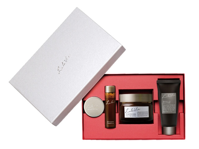 季節の変わり目で肌のゆらぎが気になる人、スペシャルケアを取り入れたい人におすすめの、スキンフードのクリスマスコフレ。大人気の導入美容液にラベンダーが加わった数量限定アイテムと、日本未発売のゴールドキャビアのシートマスクとコットンが付いたセットです。ラベンダーのやさしく上品な香りのスキンケアでしっとりとした肌に。このセット限定のBOXでラッピング可能です。