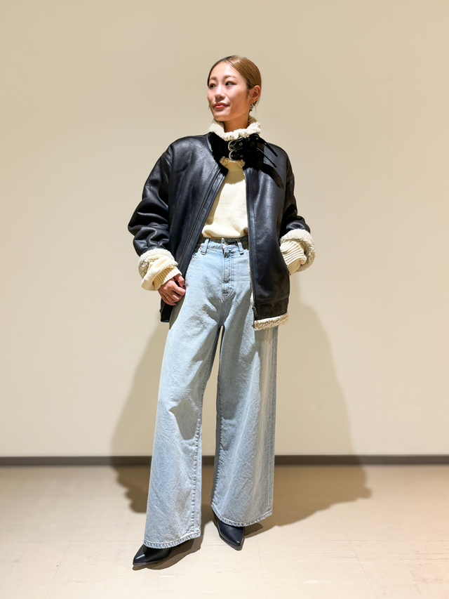 この秋冬に1枚あれば大活躍間違いなしの主役級アイテムです。ウエストが深めのタックワイドパンツと組み合わせたスタイリングがおすすめ。