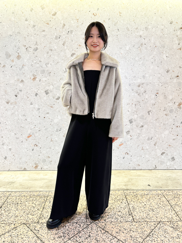 胸元がシンプルなコートなので、華やかなデザインのニットを合わせるのがおすすめ。ミニスカートやナロースカート、パンツ合わせもバランス良く決まります。袖口ファーは取り外しができ、アレンジOK。