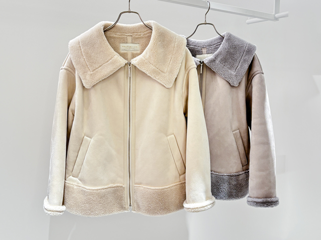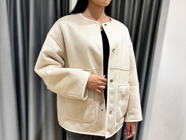 柔らかボアのノーカラーブルゾン