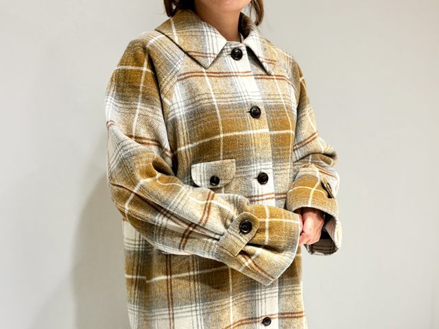 ドロップショルダーのゆったりした分量感がピークドラペルの襟元と絶妙にマッチ。きれいめからカジュアルまではまる万能コートです。おすすめのスタイリングは、トーンを揃えたグラデーションコーデ。