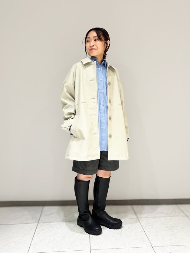 ミニスカートと合わせればスタイルアップも叶う旬のコーデに。存在感のあるアウターだからこそ、シンプルなミニボトムやプリーツスカートとの相性抜群です。デニムやきれいめロングスカートなど幅広いアイテムとマッチするのも魅力。
