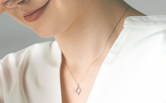 どんなコーデにも合わせやすい、美しくてシンプルなネックレス。プラチナ素材とダイヤモンドの石が贅沢に輝く、大人な洗練された雰囲気が魅力。トップのボリュームがあるため、ひとつだけで着けてもエレガントにおしゃれにきまります。普段使いから特別なシーンまで対応し、幅広い年齢の方に似合うデザイン。上質な素材を使っているので長く愛用でき、大切な恋人へ想いを届けるクリスマスプレゼントにぴったり。定番デザインながら遊び心があり、個性を出したい人や大人っぽく装いたい相手に喜ばれること間違いなし。冬ならロングネックレスと合わせて胸元に華やかさを演出してみては。