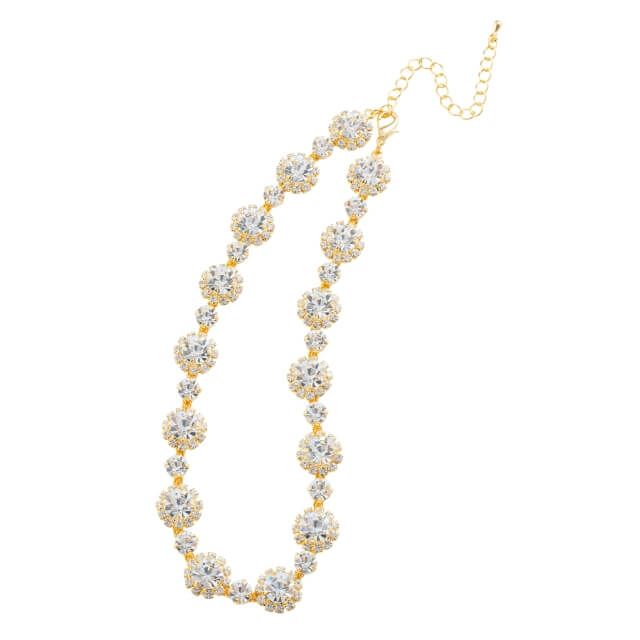 首もとにフィットするフラワーのモチーフが存在感抜群の、大人かわいいビジューネックレス。ゴールドのゴージャスで上品なデザインは、ギフトボックスを開けた時のインパクト大!キュートな花があふれる、プレゼントにおすすめのアイテムです。パーティーのお呼ばれコーデでも活躍する豪華なデザインで、彼とのクリスマスデートに身に付けて行くのも◎。多少のサイズ調整が可能で、後ろにまでしっかりとストーンがあしらわれているので、アップスタイルの後ろ姿も華やか。同シリーズのブレスレットもあり、セットコーデもおすすめ。ラッピングはシンプルなリボンが付いた包装とボックスタイプ(手提げ袋付き)をご用意。彼女の喜ぶ顔を想像しながら贈りましょう。