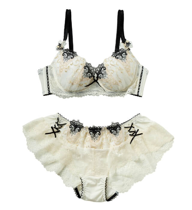 特別な印象を与えてくれるランジェリー。クリスマスのアーチをイメージした編み上げ風デザインと幾何柄のミックスが華やかです。ブラジャーは幅広い体型に合いやすく、胸の丸みを自然に見せてくれます。ゴージャスなデザインの下着なので、彼女や女友達など大切な人へのクリスマスプレゼントにぴったり。もちろん上下ペアでどうぞ。写真のアイボリーは可愛らしく優しいカラー。予算がない人も安心して選べる、数量限定のお得な価格のセットも販売中!