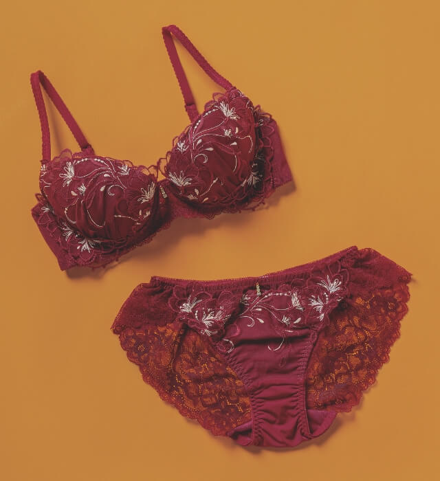 レースに華やかなアップリケを添えた、特別な日を彩るクリスマスコレクション。バストを無理なく中心に寄せ、上向きで上品なバストを実現。見た目の美しさが格段に違います!キラキラと輝くラメ刺繍が目を引く、ゴージャスながら繊細で品のあるランジェリーです。ブラはB~Iカップまでの豊富なサイズを展開。さらにG・H・Iカップのグラマーサイズは、カップ内蔵のサイドパネルがバストをぐっと持ち上げて、脇ラインをスッキリ見せてくれます。少し大人な雰囲気をまといたい人、特別な日に気分を上げたい人におすすめ。バックレースショーツを合わせれば、いつもより少しセクシーな雰囲気に。インナー上下を揃えてギフトセットとして贈るときっと喜んでもらえるはず。もちろん自分へのプレゼントに選ぶのもおすすめです!