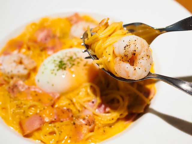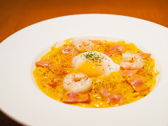 海老のスパイシーカルボナーラ 温泉玉子添え 1,815円