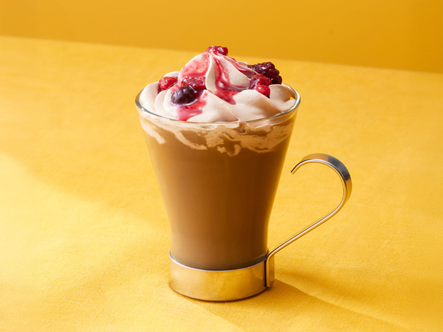 注文を受けてから1杯ずつ点てるほうじ茶に、チョコシロップとミルクを合わせた「ナナズグリーンティー」ならではのラテ。「売茶中村」と共同開発したほうじ茶パウダーは、強めの焙煎でしっかり香ります。ショコラホイップとベリーソースも相性◎。