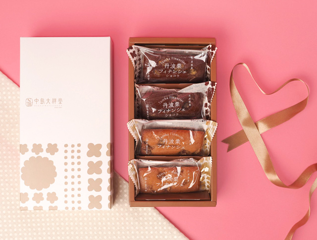 丹波の豊かな実りを生かしたお菓子が揃う「中島大祥堂」。看板商品の丹波栗フィナンシェは渋皮煮を生地に混ぜ込み、しっとりと焼き上げた逸品です。お世話になっている方への贈り物や、自分へのご褒美にもおすすめ。