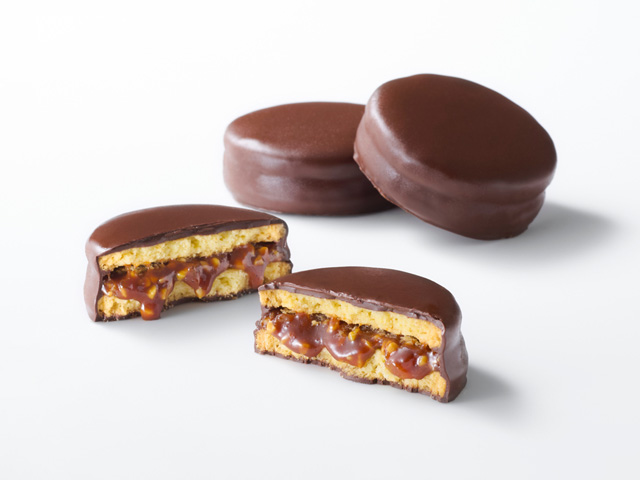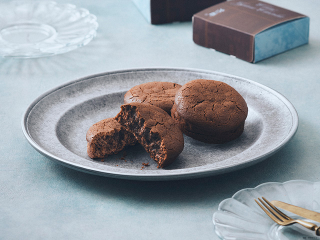 「キャラメルチョコサンド」は、オレンジピールが香るビターなキャラメルをサブレでサンド。くちどけのよいチョコレートでコーティングした、贅沢な味わいが楽しめます。