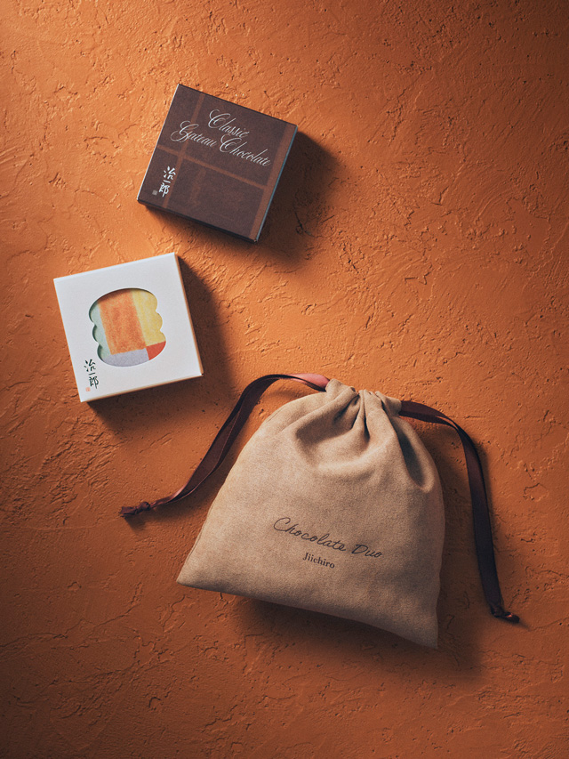 バウムクーヘンでおなじみの「治一郎」がお届けするバレンタイン限定セット。「クラシック・ガトーショコラ」と「キャラメルチョコサンド」をオリジナル巾着に詰め合わせた「ショコラ・デュオ」は、チョコ好きにはたまらない組み合わせ♪