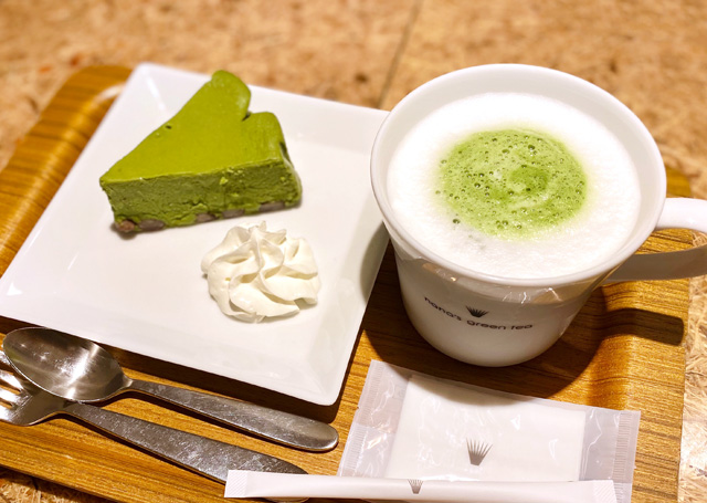 (ドリンクセット:抹茶チーズケーキに+390円で抹茶ラテをプラスできます)