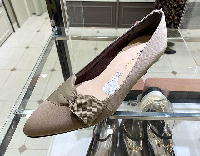 グログランテープのターバンリボンがアクセントのポインテッドトゥパンプスが履き心地もランクupした「ふわさら」シリーズから登場しました。ラウンド状のビジューが足元にさりげない輝きをプラスした1足はサテン生地が上品な印象で、結婚式やちょっとしたパーティシーンでも活躍してくれます。