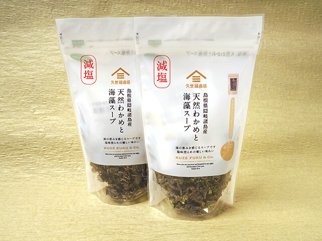 全国の美味しい食品を紹介する久世福商店から、オリジナルの「天然わかめと海藻スープ」の減塩バージョンをご紹介。従来の品に比べて塩分が27%カットされ健康にも美容にも◎。希少な島根県産天然わかめと食感の良い茎わかめ、とろみのあるがごめ昆布、シャキシャキとしたアカモクと選りすぐりの海藻がたっぷり入っています。久世福商店の万能だしの風味がふんわり香り、4種類の海藻のうまみと食感が味わえる満足感たっぷりの、キッチンに常備しておきたい逸品です。お湯を注ぐだけなので調理も簡単。チャック付きで保存や持ち運びにも便利。