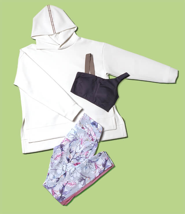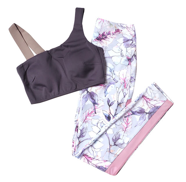 「シェイド ショルダーコンシャスブラ」は新しさとベーシック感をミックスしたデザイン。アンダーと中のゴムを分けることでしっかりホールドし、上半身を伸ばしたときにブラが上がってしまう悩みを軽減します。フィット感に加えて、裏地にコットンを使用し肌当たりにも配慮したノンストレスな着心地で、ヨガやピラティスなどはもちろん、器具を使ってのハードな筋トレなどにもおすすめ。「フラッフェ フルレギンス」は上品で大人可愛いフラワープリントが魅力。爽やかなカラーも素敵です。ハイウエストで気になるお腹・腰肉をカバーし、サイドに入ったメッシュの切り替えには細見え効果も。どちらも水陸両用で使用が可能なアイテム。ストレッチやトレーニングにどうぞ。